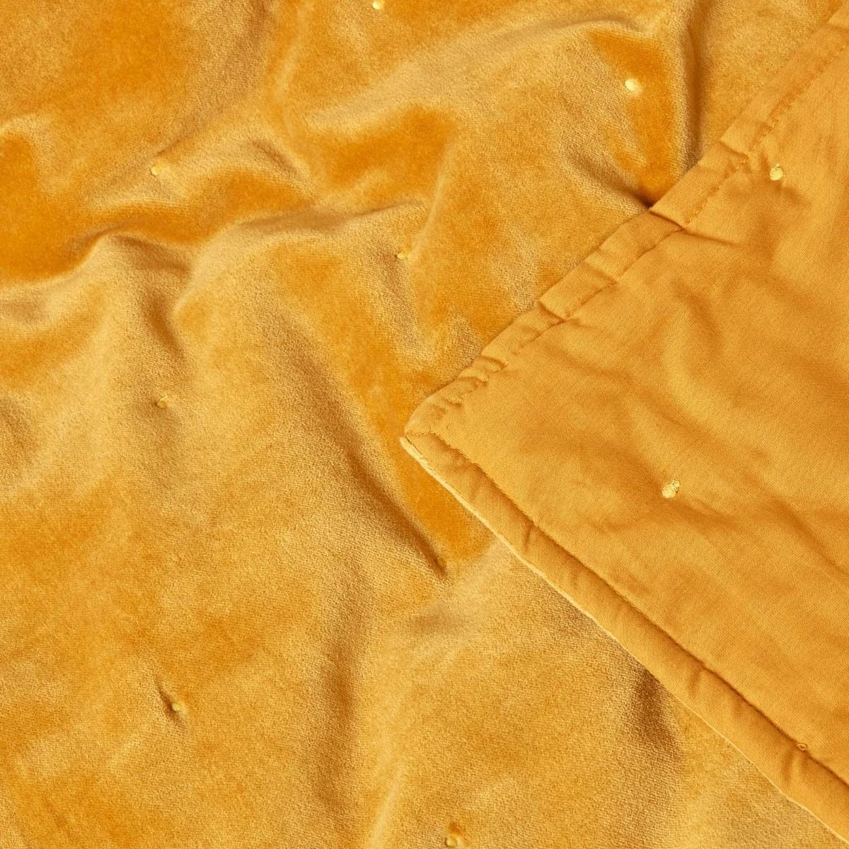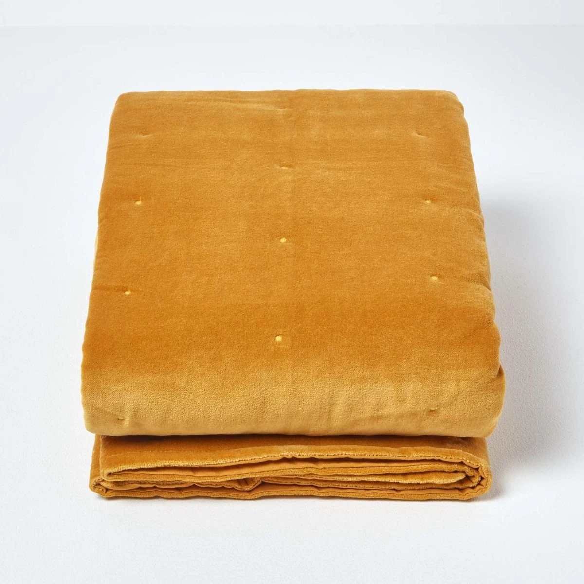 Stylish and soft throw from Homescapes, woven from luxurious 100% cotton velvet, which offers a more subdued colour when compared to polyester velvet for an elegant look. In a contemporary colour, this mustard throw has been quilted with polyester fibre for extra thickness and warmth. Finished with handstitched embroidery, our velvet throw will create a lavish look in your interiors.