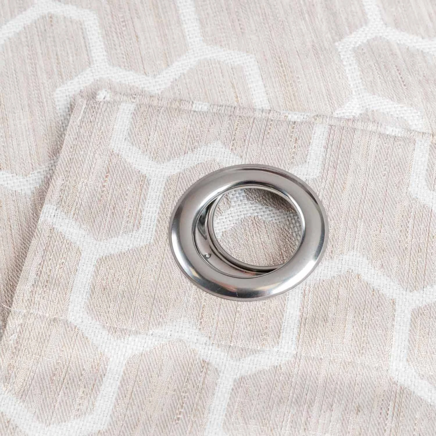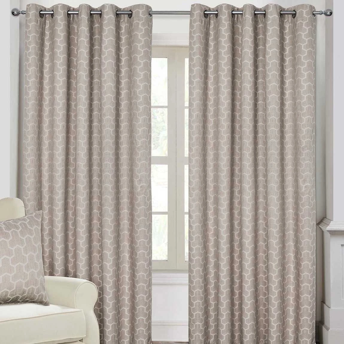 Geometric style curtain pair from Homescapes in a natural shade. Eyelet style for easy use, these readymade curtains have complete 3 pass blackout lining.
