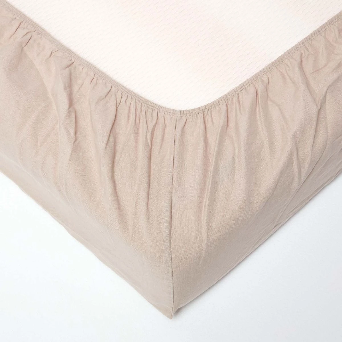 Natural beige deep fitted cot sheet from Homescapes’ children’s bed linen range. With a fully elasticated skirt, this baby cot sheet is woven from a premium blend of cotton and linen.