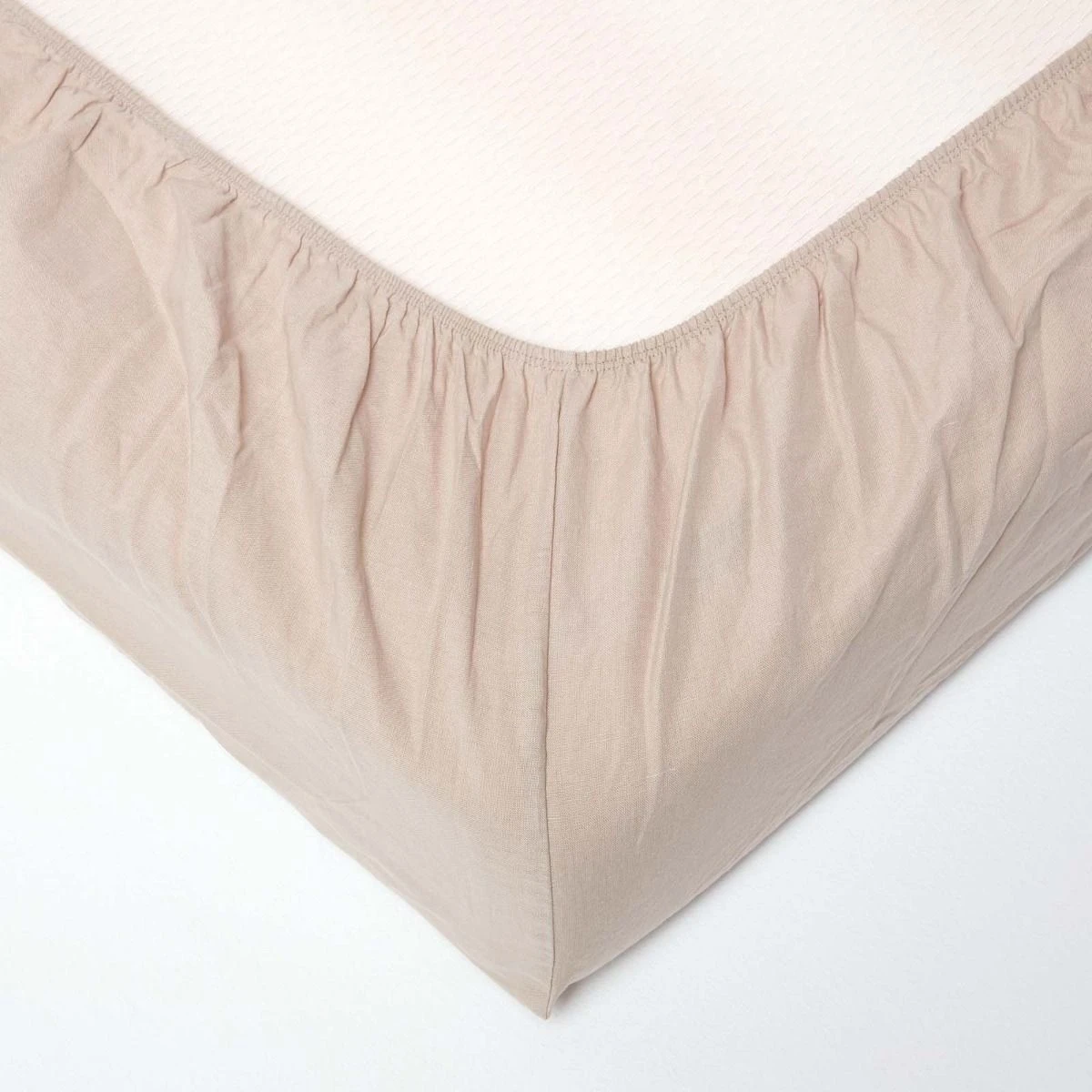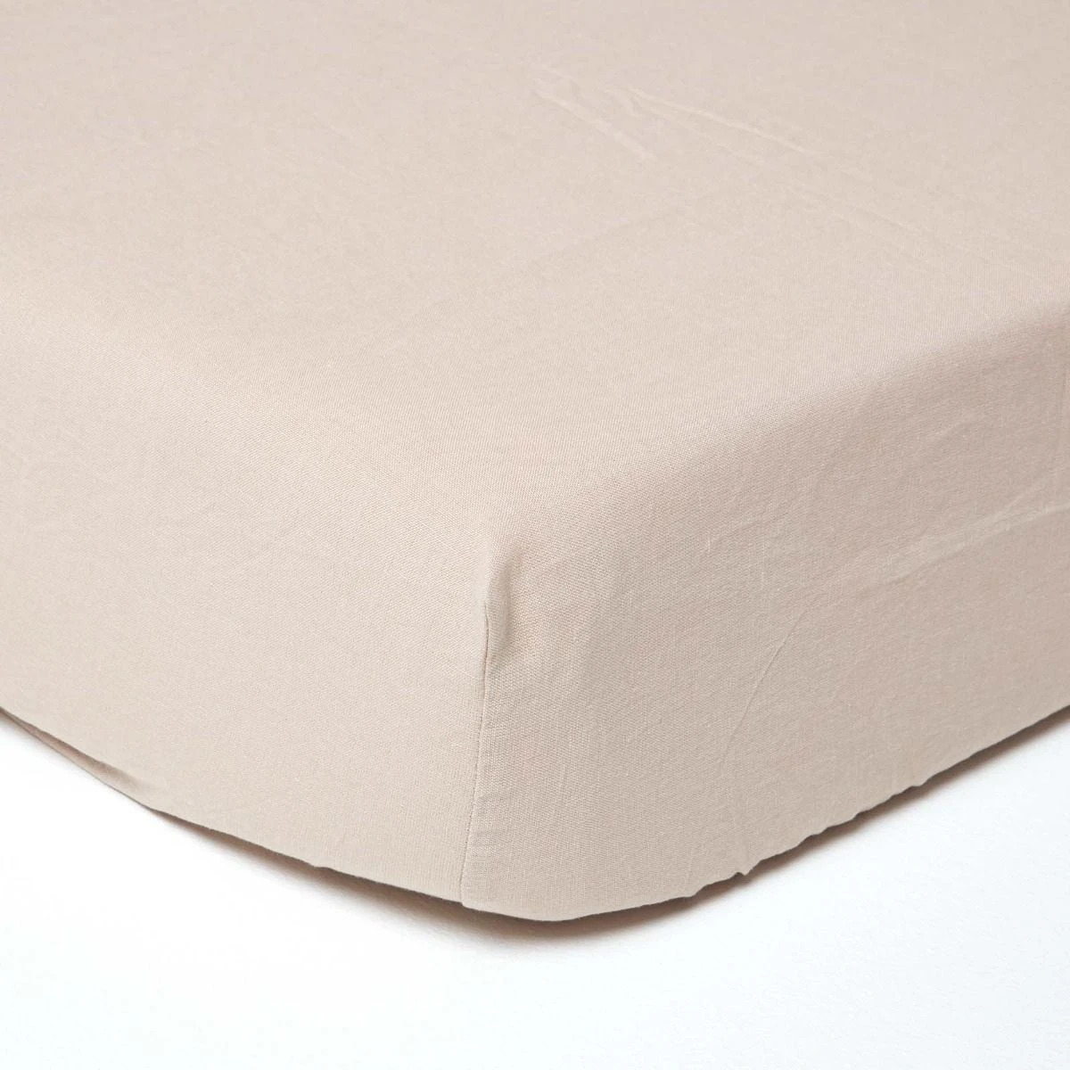 Natural fitted linen sheet from Homescapes’ linen bed linen range, woven from French flax linen and combed cotton for ultimate softness. Fully elasticated skirt.