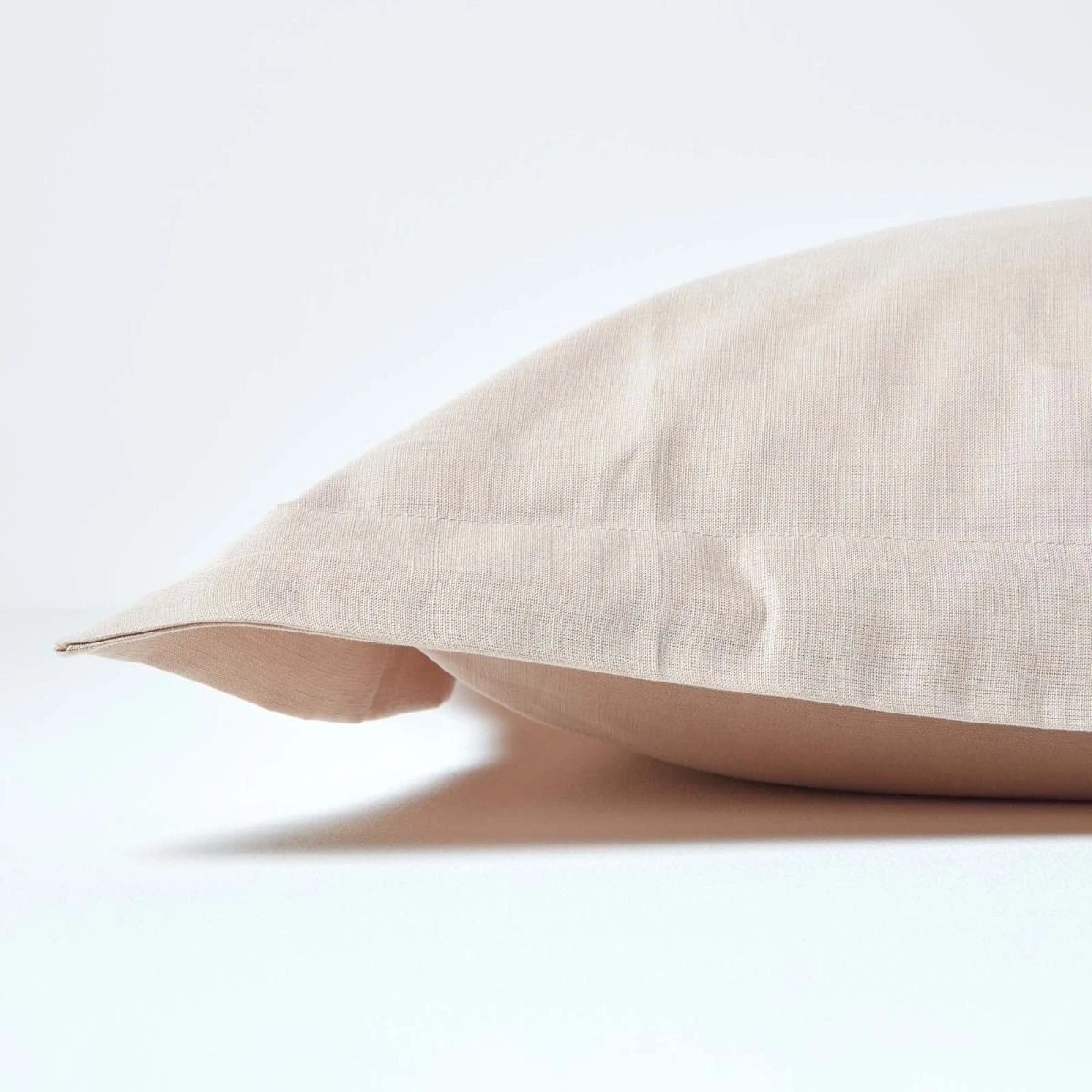 Traditional Oxford pillowcase in Natural, woven from French flax linen and premium cotton. Natural linen pillowcase is part of Homescapes’ linen bed linen range.
