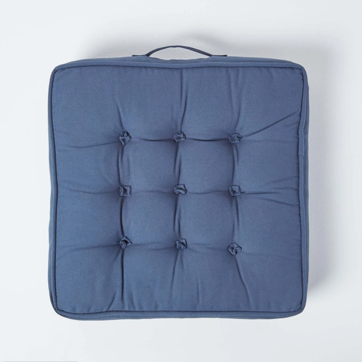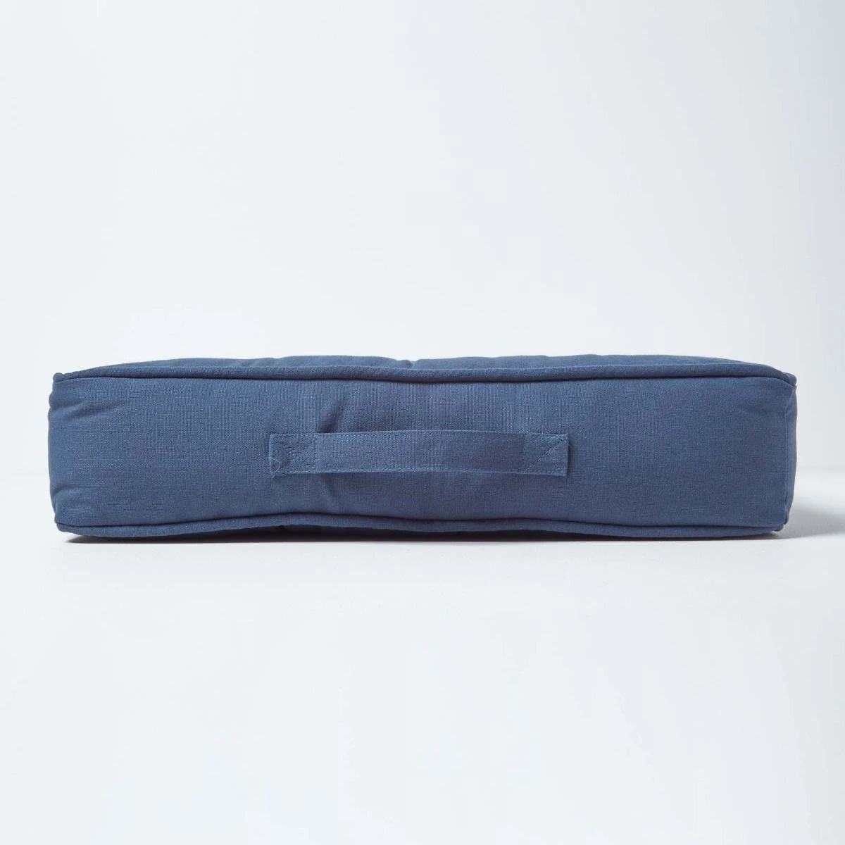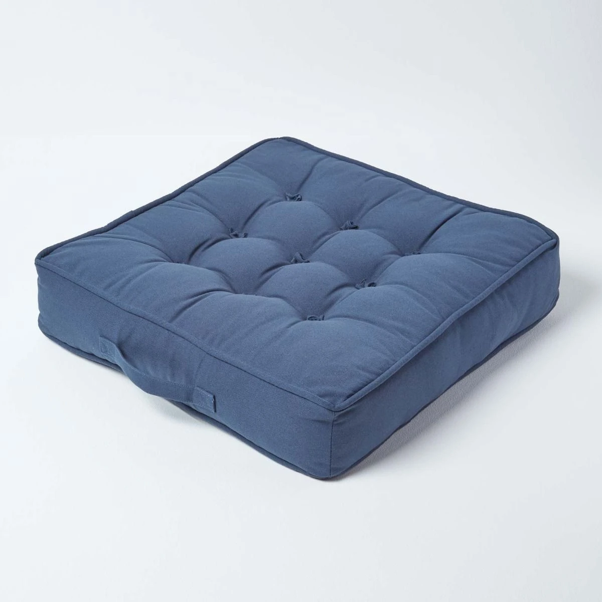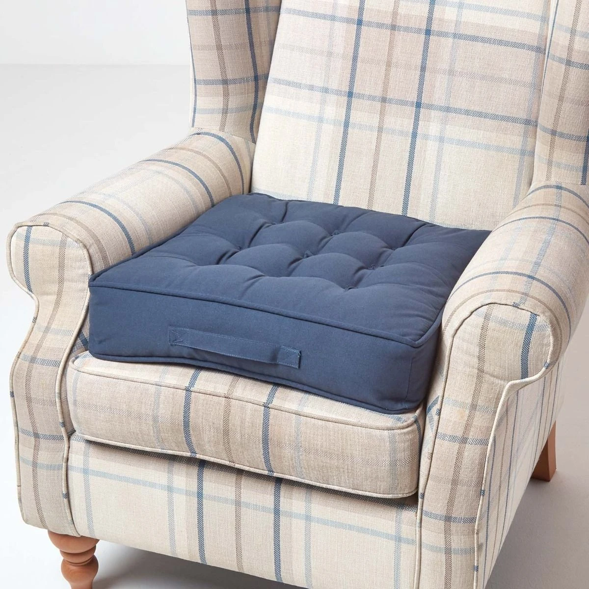 Cotton Armchair Booster Cushion Navy Blue has been specifically designed to enhance the sitting comfort and for easy getting in and out of the chair. These booster cushions qualify to be called booster cushions for the elderly as they are specifically designed for those who have knee/joint problems and who find it difficult to sit due to old age. The chair booster cushion come with a convenient carry handle and makes a good gift item for people post operation and after pregnancy. Cushion is buttoned and piped, and filled with supportive polyester filling that plumps back into shape time after time.