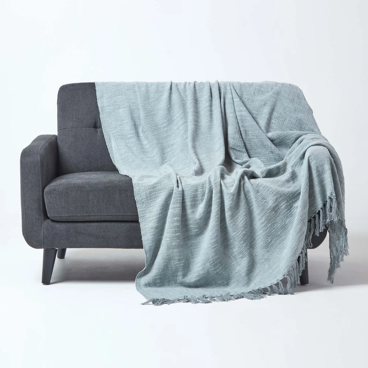 The Nirvana Slub throw from Homescapes comes in a neutral grey shade that will work with any interior colour palette. Woven from 100% cotton, the yarn has been produced with ‘slubs’ which gives the fabric an uneven weave creating texture and added warmth. Ideal to use on your sofa or bed, this heavyweight throw will not move around when in use.