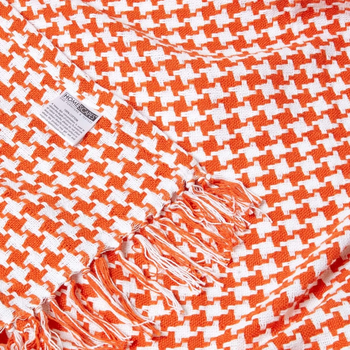 Orange Houndstooth 100% Cotton Bedspread Throw, 255cm X 360cm