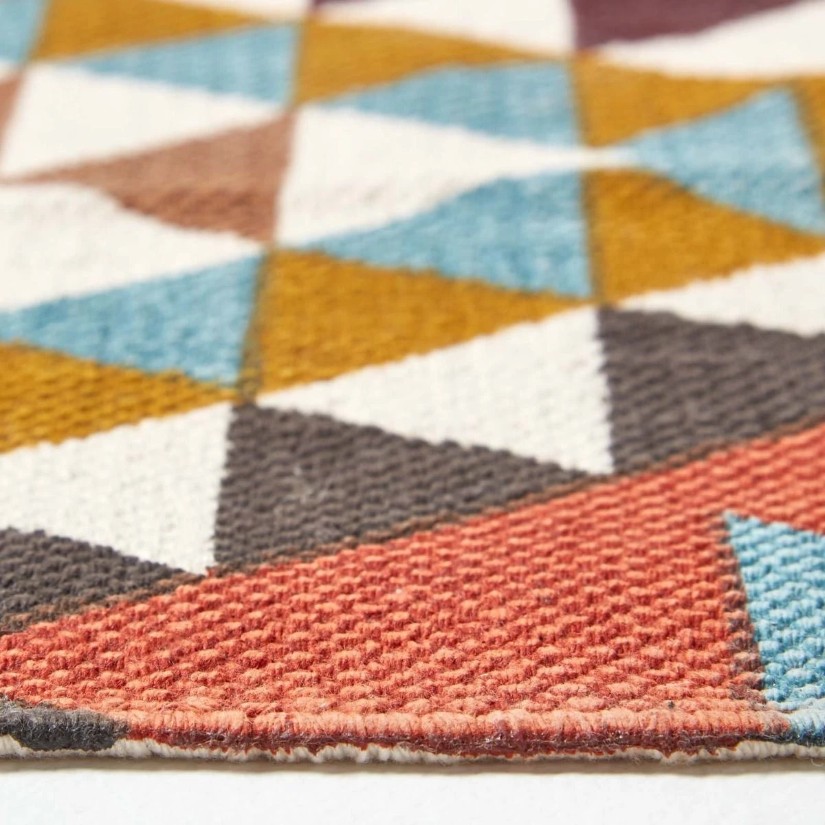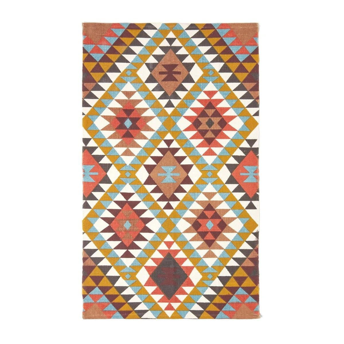 This modern rug has been woven from 100% cotton and features a bold geometric print in brown, yellow, orange and blue. Cotton is a strong and durable material, making this rug ideal for daily use. This hall runner is also available in three other rug sizes.