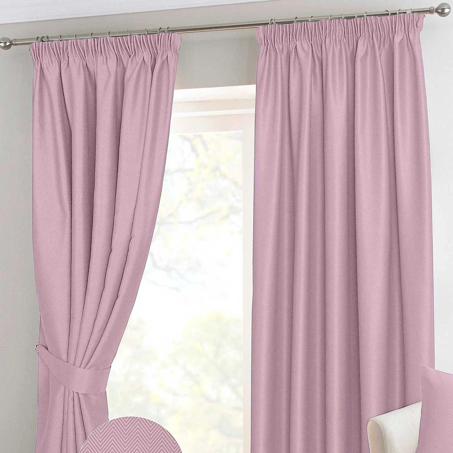 Homescapes Pastel Pink Herringbone Chevron Blackout Thermal Curtains to block out light, keep in heat and save on your energy bills.