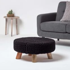 Black Leather And Suede Patchwork Cube Pouffe 36 X 36 X 38 Cm