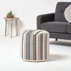 Grey, Black And White Stripe Bean Filled Pouffe Tall 45 X 40 Cm