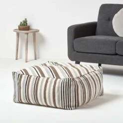 Grey, Black And White Stripe Beanbag Cube Pouffe Large 60 X 60 X 30 Cm