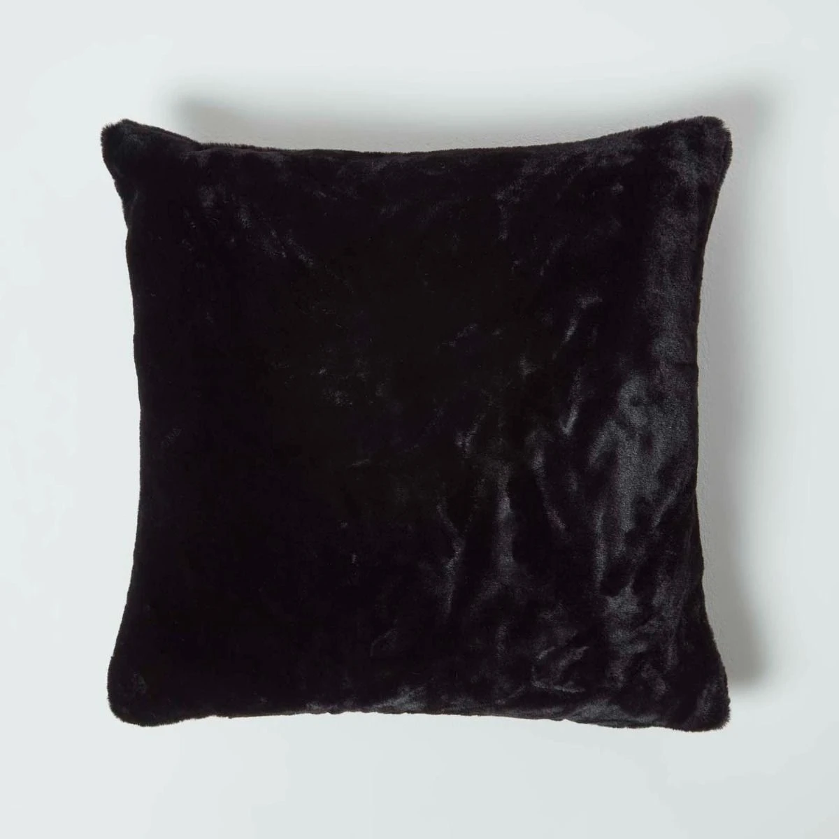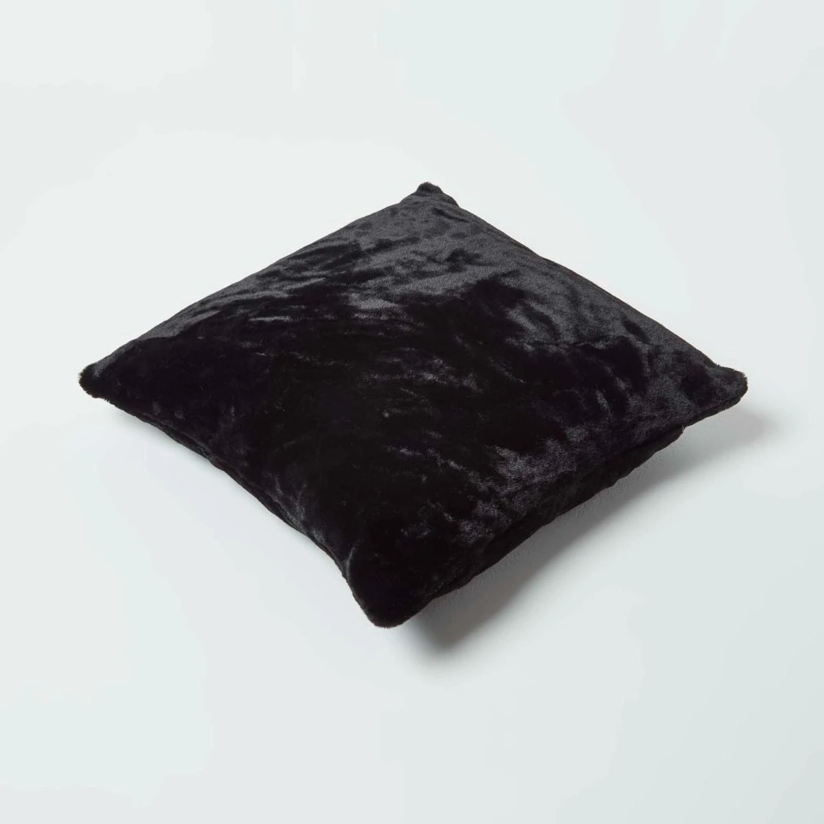 Black Velvet Cushion by Homescapes. A timeless addition to any home, this faux fur cushion is a beautiful addition to any living space.