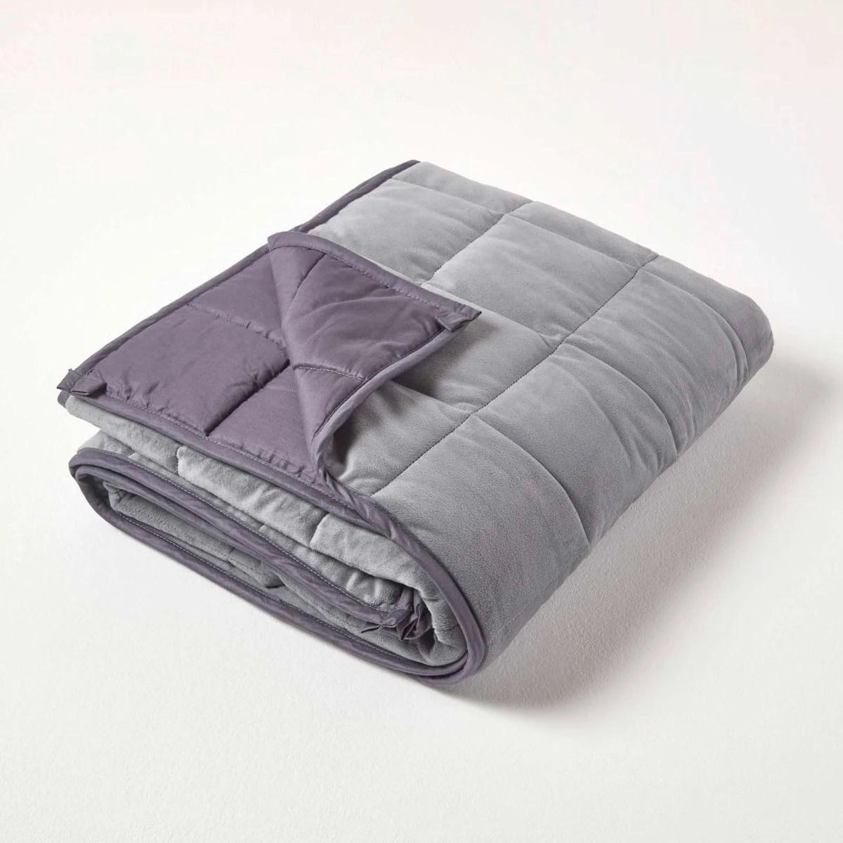 Both functional and stylish, Homescapes weighted blankets are box quilted and piped around the edging, this ensures that the lining and glass beads stay in place and the weight remains evenly distributed. Evenly spread loop ties (8 in total) are attached to the dark grey piping so that you can fasten the heavy blanket securely inside a weighted blanket cover (sold separately), allowing you to mix and match cover colours and also providing protection from stains and wear and tear.