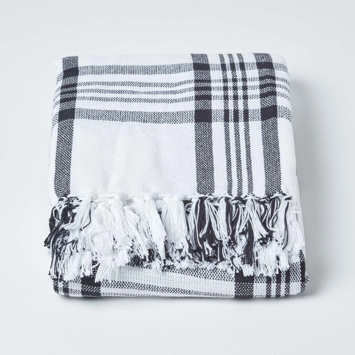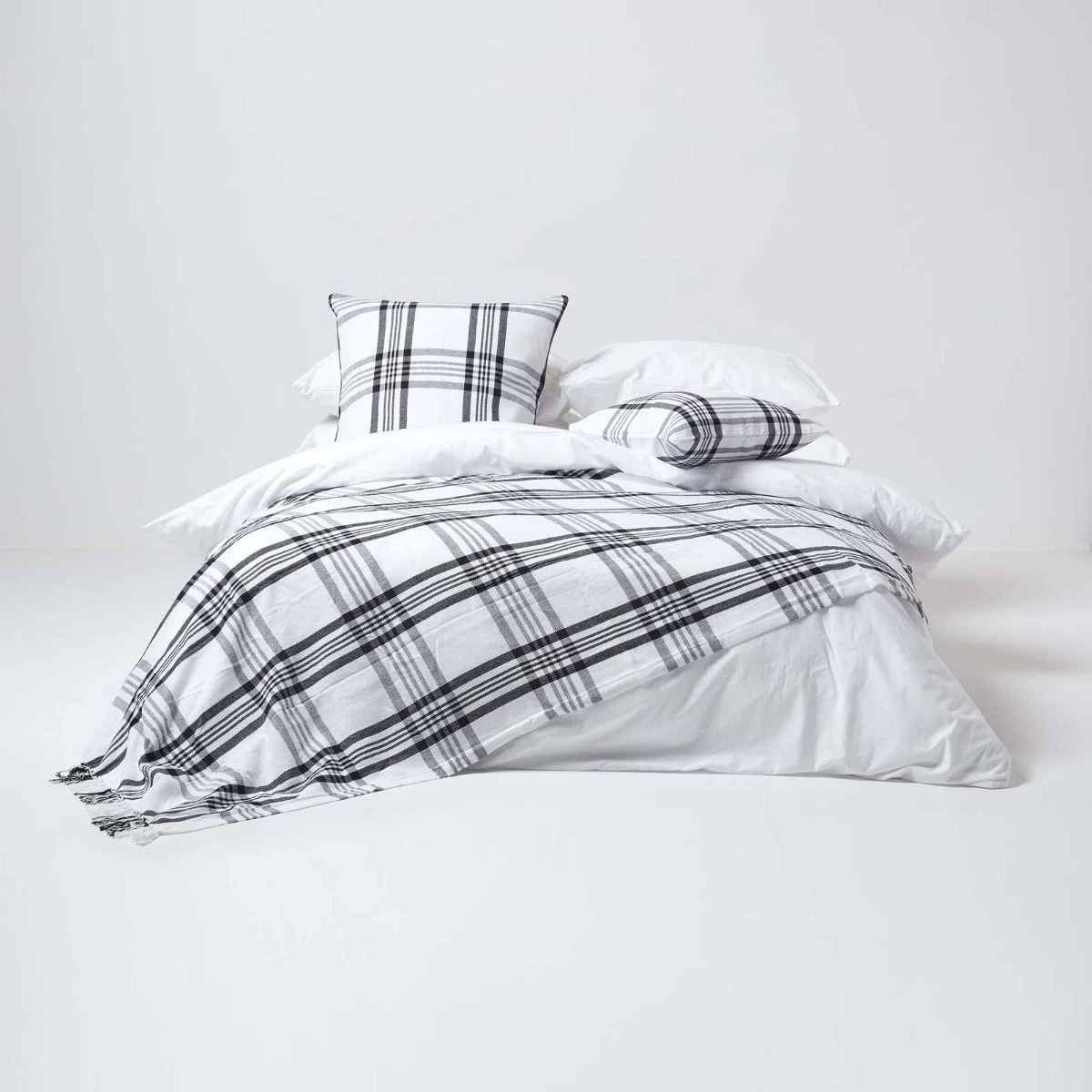 White & Black Tartan Check Sofa And Bed Throw
