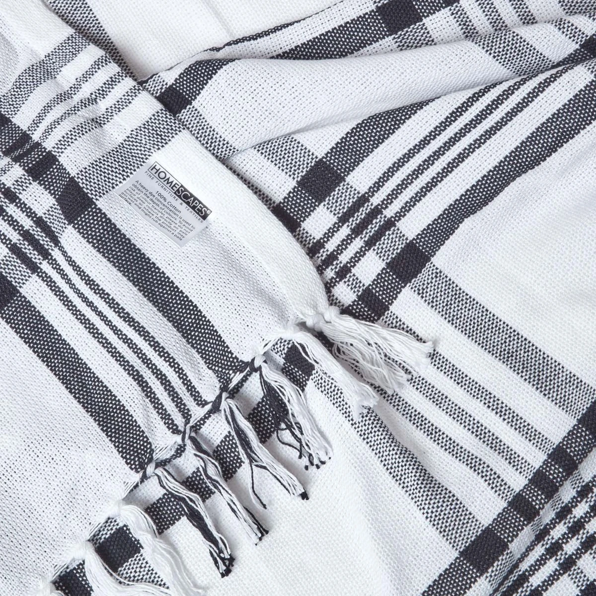 Homescapes White & Black Tartan throws are a stylish masculine household accessory, as with any design of Scottish influence. These covers are of the highest quality and are constructed using 100% soft cotton yarns. This means that the fabric bears a wonderful balance, obtained from the weaving of single yarns.The contemporary classic plaid design originated in woven wool cloth in Scotland, and was primarily worn by clansmen. Despite that it has consistently proven itself as a stylish print over the years; it will never go out of fashion.With a range of sizes available (see below), these fine pieces might serve you as bed throws for single, double, queen and even king sized beds. They are also a cheap alternative to redecorating should you wish to give you room a new lease of life. If this colour scheme is not your cup of tea then you should consider another of the four designs which Homescapes offers.