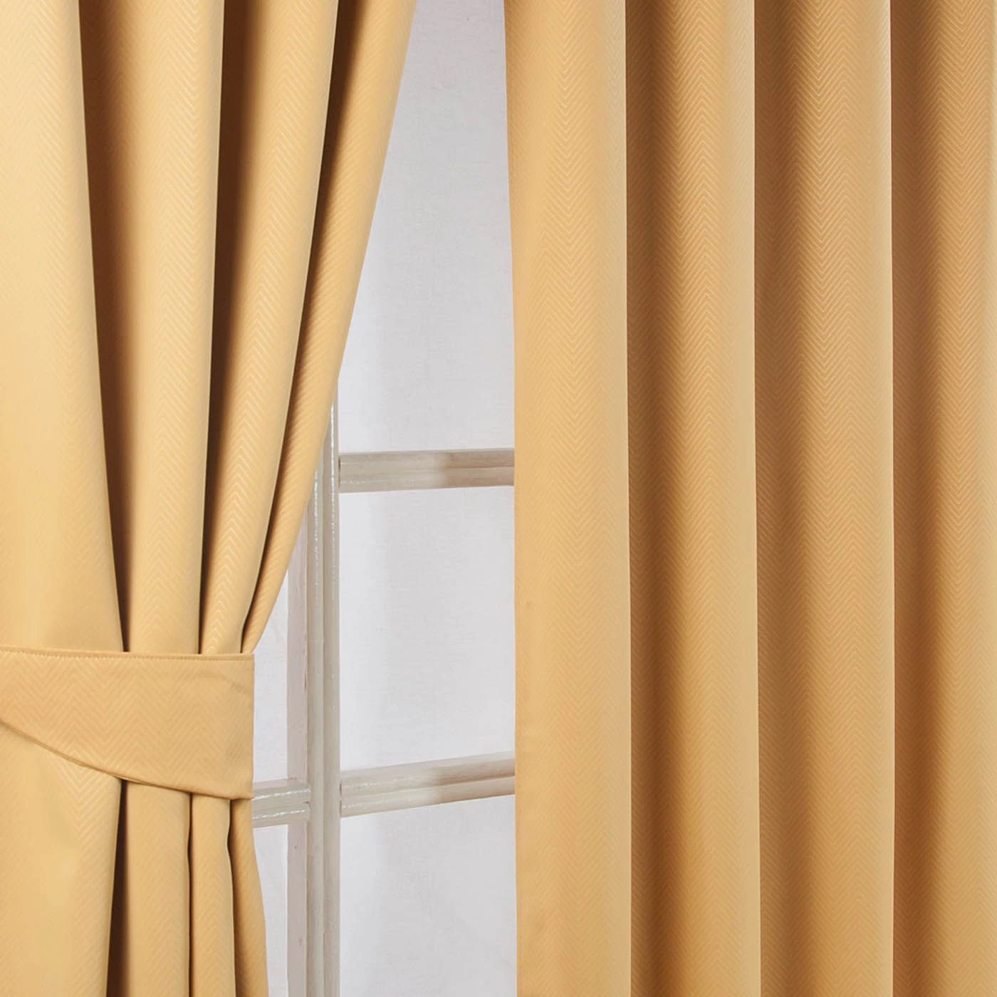 The blackout lining makes sure that you aren’t disturbed by the sun, so these ready made curtains are a great choice for bedrooms. They’re also ideal for living rooms, as the thermal lining keeps the draughts away and the heat in, as well as reducing street noise. The herringbone chevron pattern in mustard complements both contemporary and traditional schemes. The lining is incorporated inside the curtains, so they look good from the front and back.