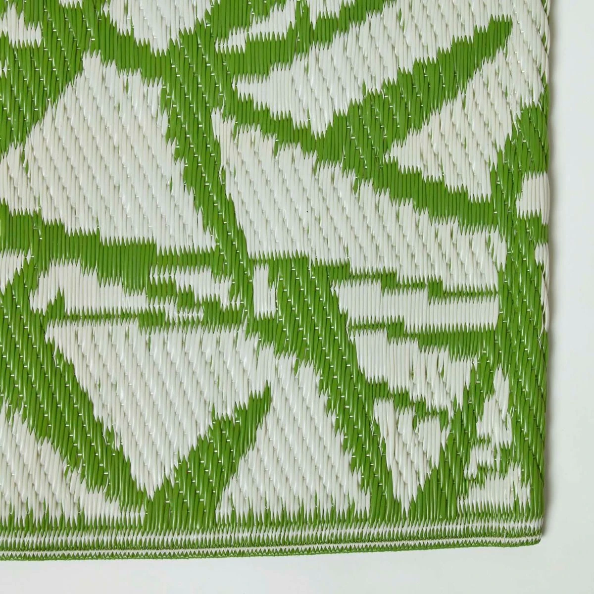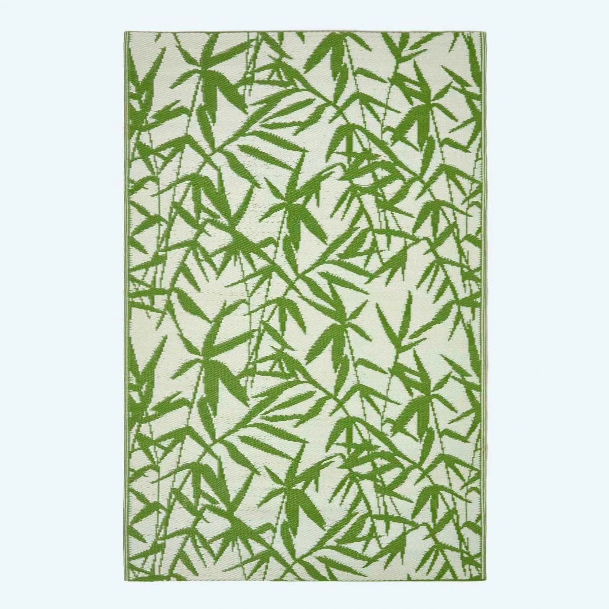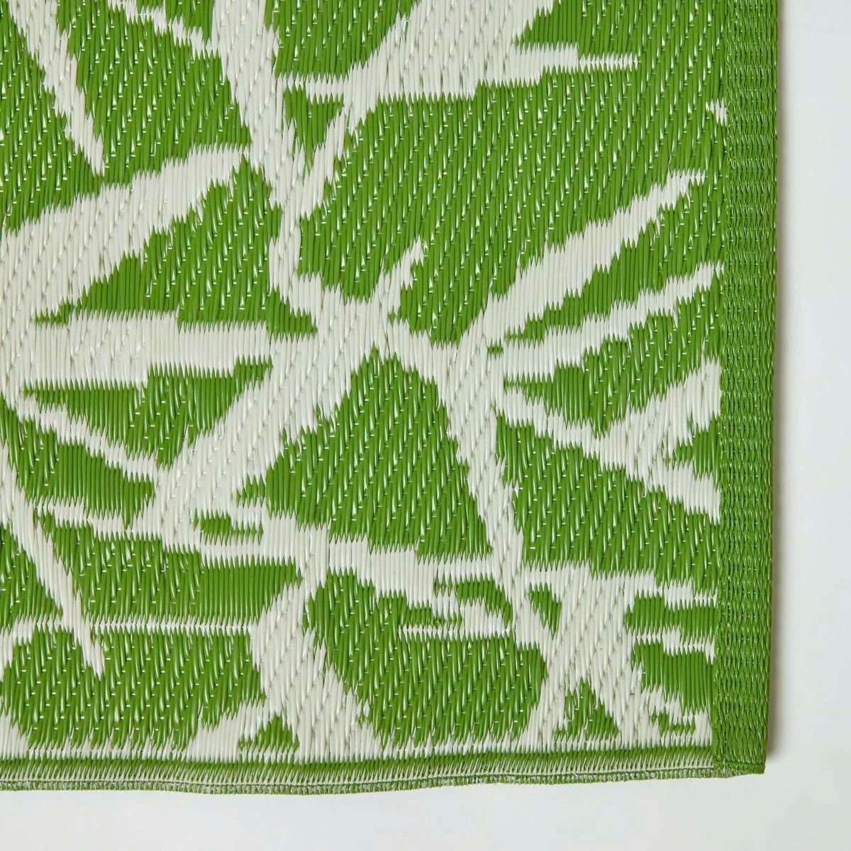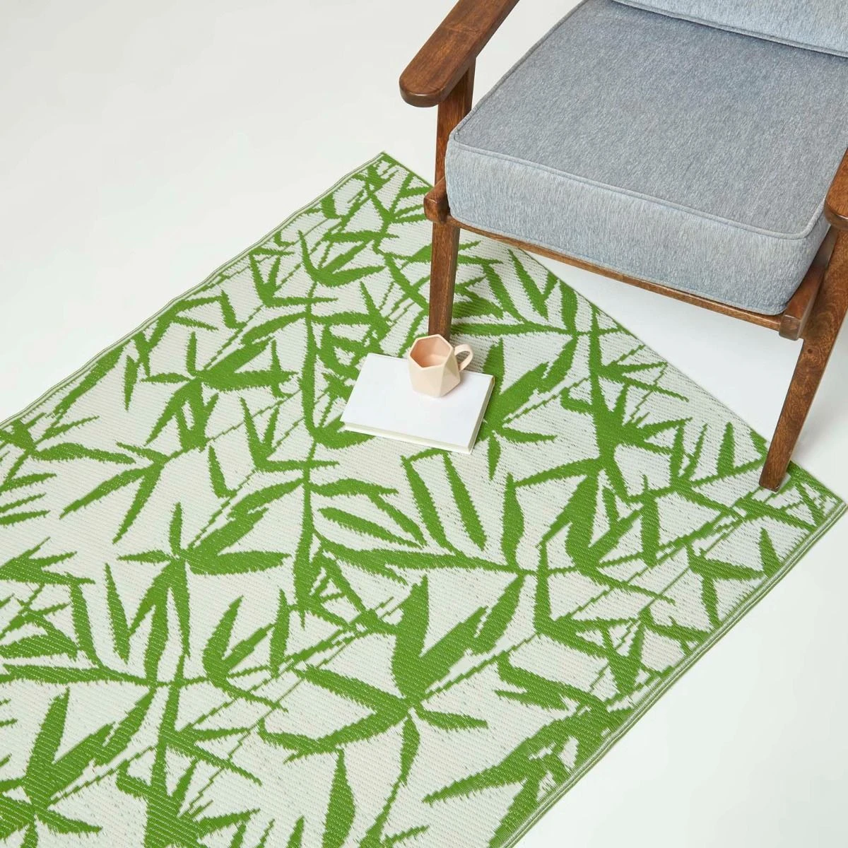 An on-trend outdoor rug ideal for all weathers and garden types. Woven from recycled polypropylene, this sustainable and contemporary white and green patio rug features a silhouette bamboo print – perfect for adding that botanical look to any space.